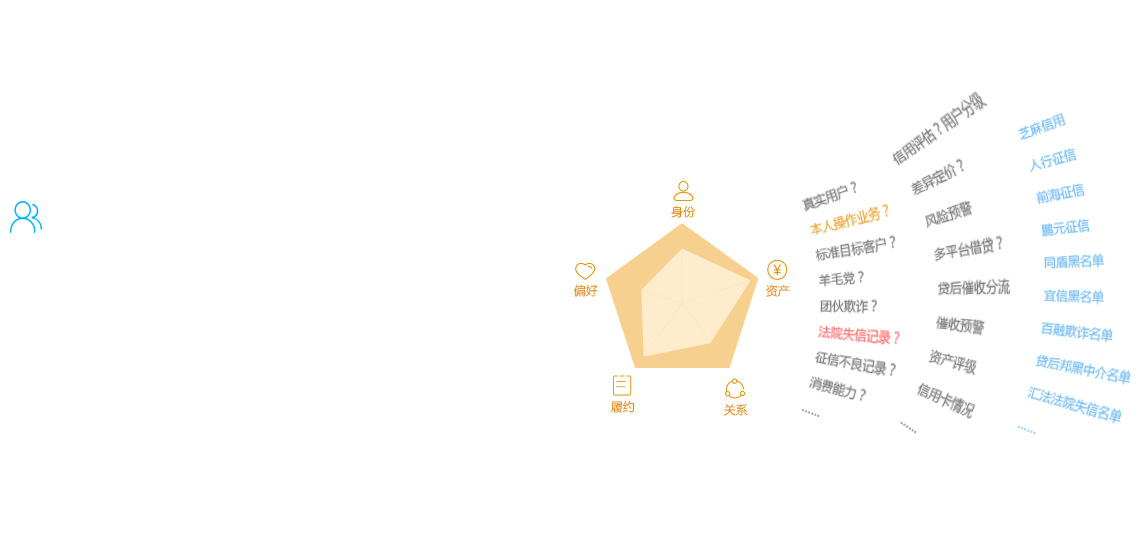 深度挖掘个人及企业用户画像,,,支持名单批量导入,,,,灵活管理账户角色。。。。